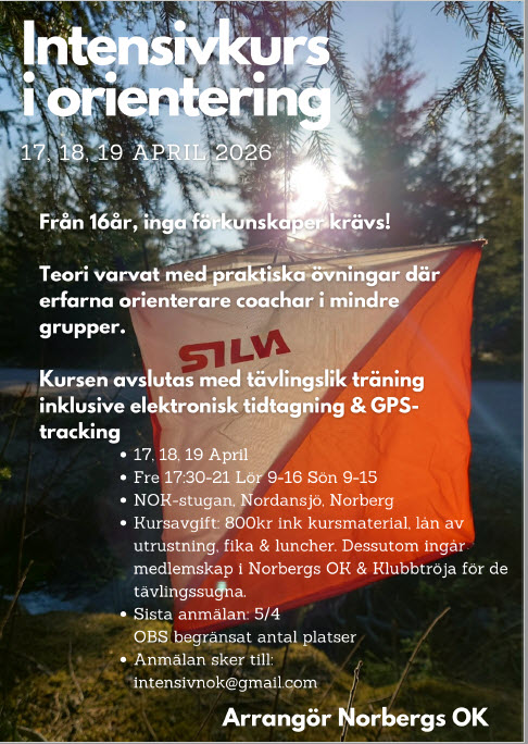 Nu kör vi snart igen - NOK:s populära intensivkurs i orientering för vuxna. Reservera hela helgen 17-19 april för en intensiv, rolig och givande kurs så får du en erfarenhet du kan njuta av för hela livet framöver.