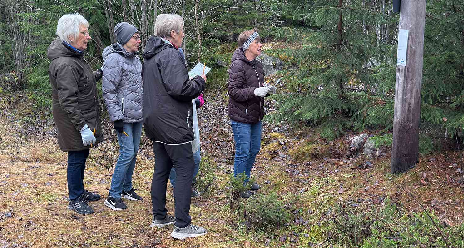 Tipspromenad 2025-11-09 De sista löven hänger ännu kvar när tipparna drar ut på promenaden runt elljusspåret.