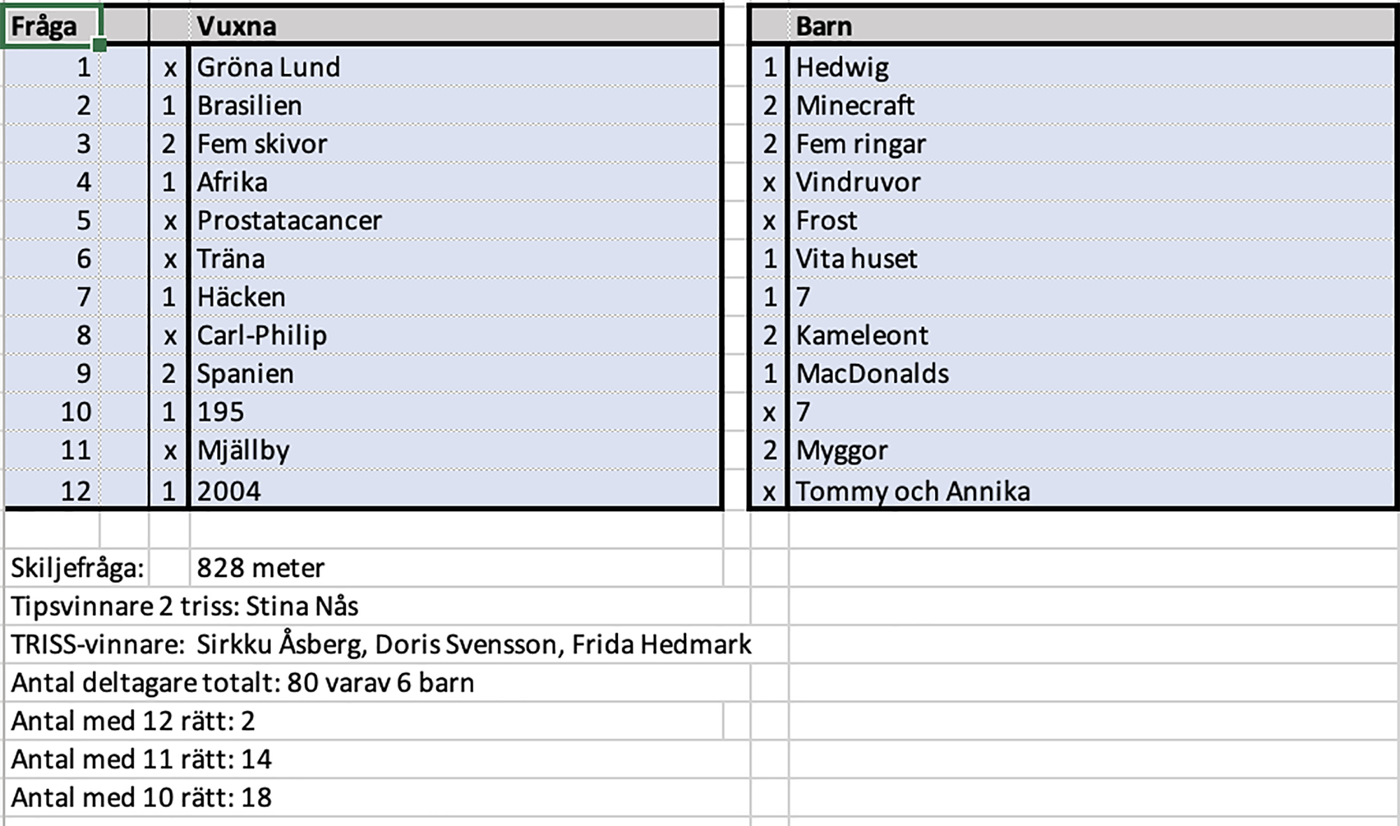 Pristagare har meddelats och priser kan hämtas hos familjen Henriksson på Davidsbovägen 3. Telnummer för kontakt 073-782 65 78